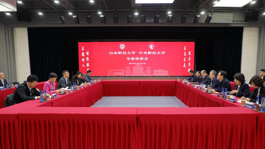 10月15日,山东财经大学党委书记查玉喜、校长洪俊杰一行来校调研交流。我校党委书记吴国生出席交流座谈会。
