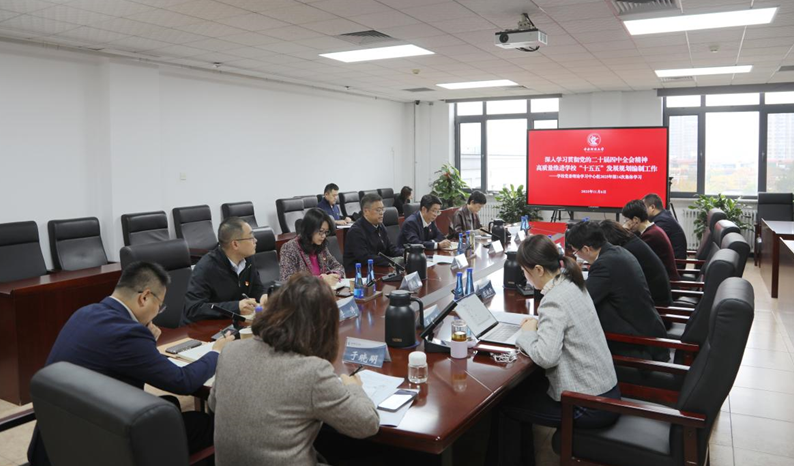 马海涛表示,要深入学习贯彻党的二十届四中全会精神,进一步统一思想、明确方向、凝聚力量。要充分发挥学校学科优势,围绕全会精神组织师生开展理论研究与学理阐释,持续推出高质量科研成果。要全面总结“十四五”成效与不足,科学设定“十五五”发展目标,坚守财经高校特色,坚持分类发展、差异化路径,扎根中国大地办教育,扎实推进财经报国拔尖创新人才培养。要深化改革育人模式和教育方式,强化产教融合与国际合作,加大学科整合与优化力度,提升科研质量与智库影响力,持续在学校发展关键领域实现全新突破。