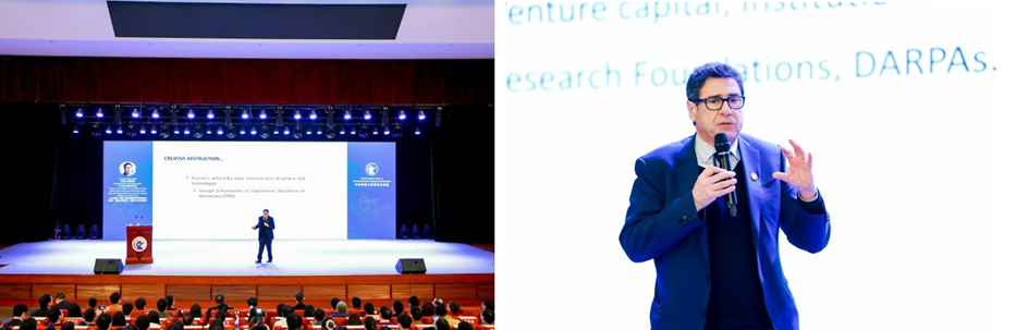 创新发展学院何其春教授对讲座内容进行总结。他表示,阿吉翁教授精彩而富有激情的演讲启迪了师生对人工智能发展的新思考,希望同学们以阿吉翁教授为榜样,带着激情追求真理。在互动交流环节,师生踊跃提问,从模型人工智能的方式、人力资本、政府政策、金融支持等方面与阿吉翁教授进行了深入交流。