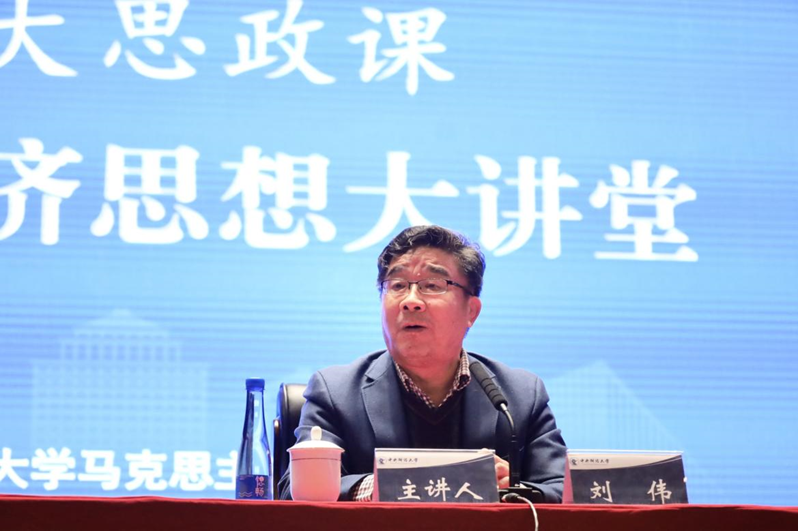 10月29日,2025年“中财大思政课·习近平经济思想大讲堂”邀请中国人民大学原校长、一级教授刘伟,主讲《新阶段、新理念、新格局——深入理解习近平经济思想的要义和逻辑》。刘伟教授指出,在推进中国式现代化建设的关键时期,必须坚持以经济建设为中心,加快经济发展方式转型,突出以推动高质量发展为主题。坚持以经济建设为中心,根本在于完整准确全面贯彻新发展理念,并以其为引领加快构建新发展格局。新发展格局是实现经济现代化的路径选择,关键在于畅通国民经济循环,特点在于以扩大内需为战略基点,实质在于实现经济发展自立自强。要从整体上把握新阶段、新理念、新格局,才能更好把握习近平经济思想的逻辑要义。