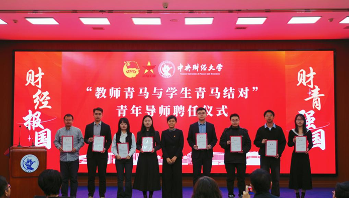 学校持续深化“导学相长”育人模式,推动学生青马班与教师青马班师生结对、同向同行。活动中,朱凌云为第十四期青马班“优秀学员”代表颁发荣誉证书,为来自财政税务学院、金融学院、保险学院、经济学院、政府管理学院、马克思主义学院 、创新发展学院的八位青年导师颁发第十五期青马班青年导师聘书,助力青年师生在理论学习和实践锻炼中双向奔赴、共同成长。