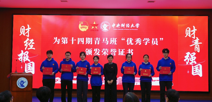 为第十四期青马班“优秀学员”代表颁发荣誉证书