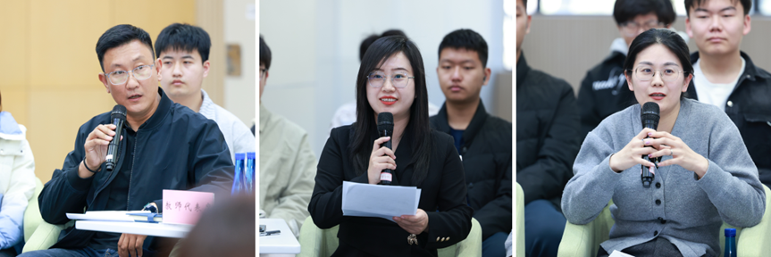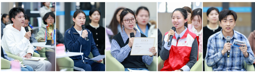 来自体育类社团、心理类社团、心理委员、高水平运动员、学生会等班团组织的五位学生代表分享了以体育人、以爱护航的成长故事;篮球社指导教师杨海林、教职工体育类社团代表刘琳琳、心理健康课教师丰怡三位青年教师,围绕健康校园建设作了交流发言。