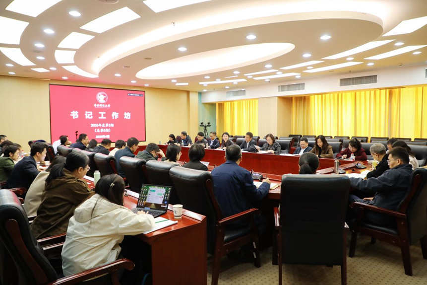 吴国生指出,学校“书记工作坊”构建起校内三级书记的交流机制,形成了上级常态指导、兄弟高校定期交流的工作格局。他就如何实现“高质量党建工作体系赋能高质量治理体系,引领推动学校事业高质量发展”这一目标提出四点要求。一是要以更高站位把牢政治方向,以高度的政治自觉、思想自觉和行动自觉,团结带领师生扎实开展树立和践行正确政绩观学习教育,做好二级党组织集中换届等学校重点工作。二是要以更实举措激发组织动能,进一步规范基层党组织设置,严肃党内政治生活,建强党员队伍,切实把基层党组织的政治优势、组织优势转化为推动事业发展的强大动力。三是要以更大力度推动创新突破,结合“党的建设质量全面提升”专项改革任务,立足实际、大胆创新,强化统筹联动,以有组织党建共同推动各项改革任务取得突破。四是要以更强合力谋划事业发展,把握改革机遇,直面矛盾挑战,在凝聚共识中增强合力,在推动落实中体现担当,切实以班子的新气象、新作为,为学校事业发展贡献更大力量。