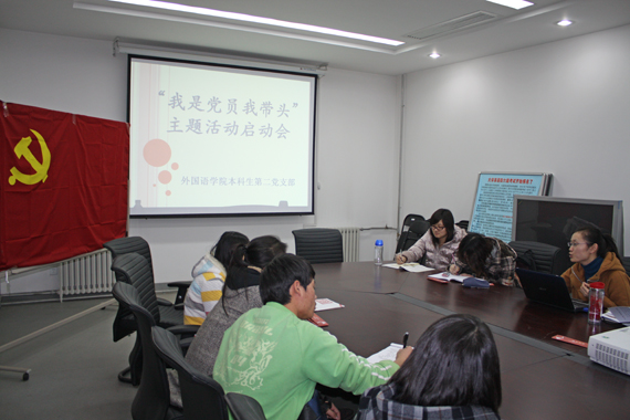 党员大会结束后,当晚6点,外国语学院本科生第二党支部在沙河校区学院三号楼学院会议室召开了“我是党员我带头”主题活动的启动会,会议由党支部书记李倩主持,所有支部成员出席了会议。首先,李倩同志传达了党员大会的内容与精神,并阐释了本次活动的背景,与支部成员们进行了民主讨论,明确了本支部在此次活动主要目标与具体做法。然后各位学生党员分别发表了自己对“我是党员我带头”的认识和理解,并展开学生党员先锋标准大讨论。支部党员们承诺在学习、生活、社会活动中做好表率,营造一种以先锋形象示范同学的氛围,真正实现“一名党员,一面旗帜”。
