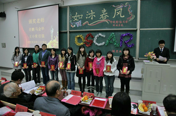 11月17日下午,财政学院莘莘学子Oscar颁奖典礼在沙河校区主教218举行。我国著名财政学家姜维壮、原校党委书记李保仁、学院院长马海涛、党总支书记杨琼、党总支副书记姜爱华、院长助理白彦锋等26名老师出席了颁奖典礼。财政学院300余名学生参加了颁奖典礼。