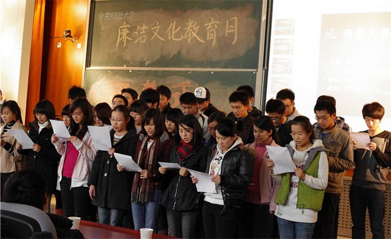开幕式上,活动负责人吴霖对活动背景作了简要介绍,大学生作为未来高素质人才的后备力量,其成长过程关乎党和社会主义事业的兴衰成败,大学生的廉洁文化教育在培养其成才的过程中有很大作用。随着社会的发展,越来越多的中财学子将走上财经领域的各个岗位,并对全国的经济发展发挥作用。大学生廉洁教育不仅是我校创先争优活动的组成部分,也是加强和改进大学生思想政治教育的必然要求。