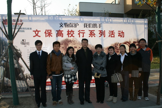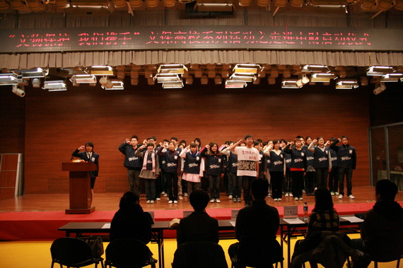伴随着激昂的国歌声,启动仪式正式开始,首先是林咏先生致开幕词,就圆明园文物保护现状及文物保护重要性进行了详细阐述,号召大家携起手来,关注我国文物保护。随后,侯老师致词,表达了对圆明园文物损害现状严重的惋惜之情,并预祝此次活动取得圆满成功。播放完圆明园系列短片之后,面对沉痛的历史现实,同学们保护中国文物的激情被点起,在志愿者代表宣读倡议书之后,五十名志愿者坚定地走上舞台,宣誓表达了自己对文物保护的决心和恒心。