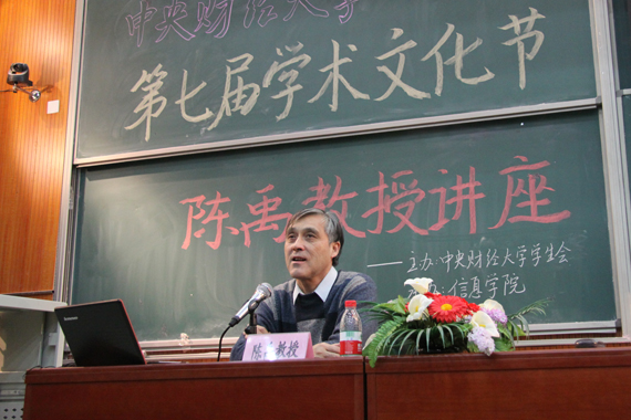 11月9日,中国人民大学信息学院教授,博士生导师,我校信息学院名誉院长陈禹做客我校第七届学术文化节,在沙河校区学院4号楼107报告厅作了题为“现代信息技术应用的新方向———从物联网谈起”的讲座。此次讲座由我校学生会主办,信息学院承办。我校信息学院院长朱建明教授、陈士平老师、团总支书记陆畅出席了本次讲座。