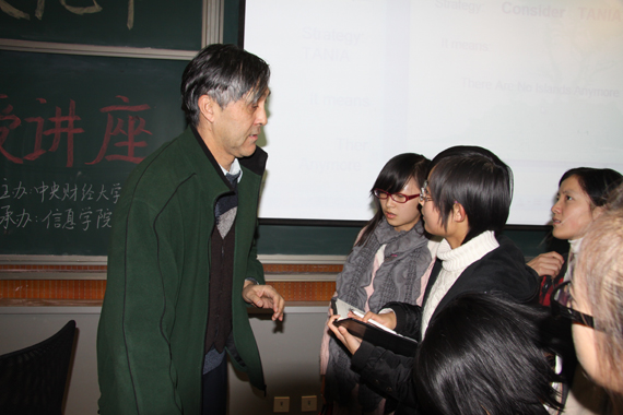 讲座后,同学们与陈禹教授进行了面对面的交流,就物联网的发展提出了自己的见解和疑惑,陈教授进行了耐心解答,并向同学们推荐了《增长的极限——罗马俱乐部的报告》、《计算机世界》等相关书籍和专业杂志。
