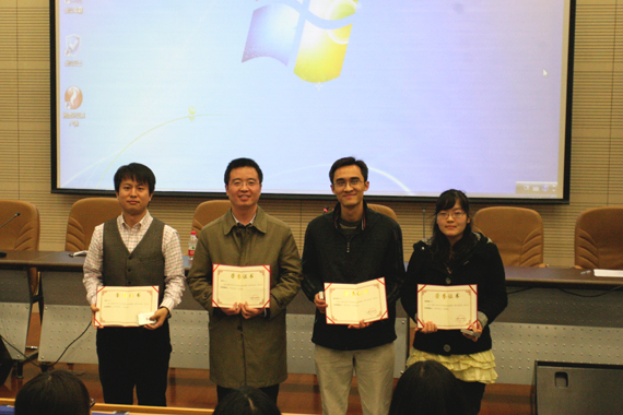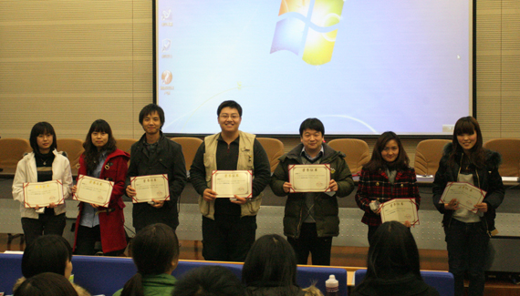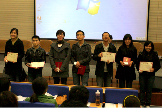 随后,大会向新闻中心2009年度优秀学生记者、校报优秀撰稿人颁发了荣誉证书。颁奖典礼后,获奖学生代表卢安黎、刘建成、申玖分别作了发言。他们与大家分享了自己在新闻中心的成长历程和收获,并对中心全体老师给予他们在业务知识、专业技能等方面的积极指导和帮助、以及对他们成长成才的关心支持表示感谢,同时也对新成员提出了期望。