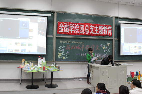 该活动是金融学院团总支组织开展的“荟萃城市风采 共建魅力北京”主题教育系列活动之一,金融学院2009级、2010级本科生共8个团支部分别将自主设计制作的城市模型进行展示和解说,并由评委进行现场评定。金融学院团总支书记欧萌、金融学院2009级辅导员刘华明、2010级辅导员谢海燕、金融学院学生会沙河校区负责人何媛及8个团支部的班长、团支书担任评委。
