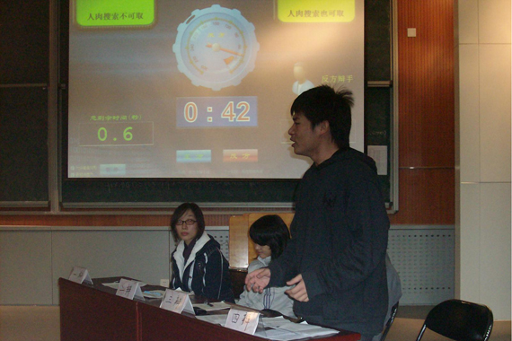 决赛辩题为“人肉搜索是否可取”。双方辩手思维敏捷,紧紧围绕各自观点展开激烈辩论。正方辩手思路开阔,妙语连珠,运用各种例证维护本方观点;反方辩手严谨细致,逻辑严密,让对手难抓漏洞。双方你来我往,互不示弱,各方队员之间更是密切合作,最大限度地发挥了团队的实力,充分体现了团队协作的重要性。在评委们紧张的讨论后,反方队伍以微弱的优势取得了胜利,反方四辩何鹤同学获得“最佳辩手”称号。
