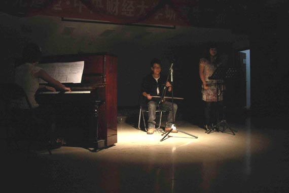 晚会在街舞社的动感舞蹈《Feed back》中拉开帷幕,他们时尚动感的舞步配合着强有力的音乐节拍点燃了现场气氛,赢得了开堂喝彩。随后,研究生新生们纷纷上台献艺,他们来到中财的喜悦之情溢于言表。2010级MPACC班的小合唱《成长的故事》,带着大家从童年一路回忆到眼前的场景;大学生艺术团的同学表演的现代舞《秋日私语》清丽唯美,舞姿轻盈动人,仿佛在诉说着秋天里神秘的故事;朝鲜族新生表演的民族舞蹈充满了浓浓的民族风韵;中国金融发展研究院师生合唱《Jast one last dance》,师生俩默契的配合以及精湛的唱功赢得了现场阵阵掌声和欢呼声,把整场晚会推向了高潮。