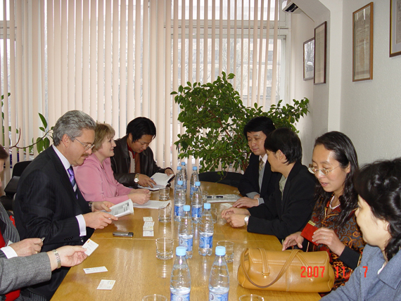 国民经济大学副校长斯孟斯罗夫接见了我校代表团一行,介绍了该校近年来的学术进展情况。王瑶琪副校长介绍了我校的概况及本次出访的主要目的和学术交流的内容。