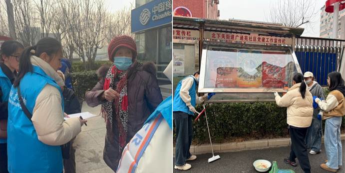 在第62个学雷锋纪念日和第26个中国青年志愿者服务日来临之际,我校校团委联动二级学院青协,组织百余名师生志愿者,走进属地街道及社区,开展了以“青春志愿行・奉献暖人心”为主题的 “三个一”系列“学雷锋”主题活动,以“一组志愿服务”“一场基层共话”“一次榜样选树”诠释新时代雷锋精神的内涵,为首都基层治理与校园志愿精神传承注入青春力量。