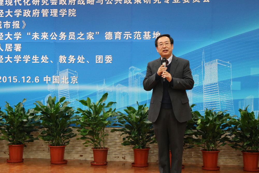 我校政府管理学院院长赵景华教授在讲话中指出:参与这个活动的同学们都有了未来当市长的愿望和理想,从现在开始就有了为一方蓝天下人们更好的生活,更大的幸福去努力的使命。他希望将来的获奖队伍能够真正到一个城市去体验自己在大赛中所扮演的角色,为大家提供锻炼的舞台。
