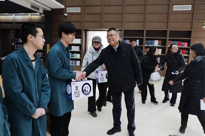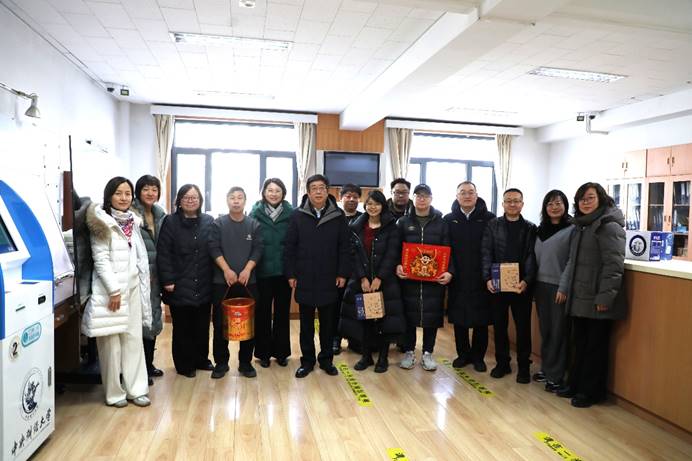 1月29日,新春佳节前夕,校党委书记吴国生、校长马海涛看望慰问坚守一线的在岗工作人员和寒假留校学生,向他们送上新春祝福。副校长蔡艳艳,校党委副书记、副校长朱凌云,副校长李涛,校党委副书记、纪委书记张庆东,校党委副书记杨莹,校党委常委、宣传部部长于晓明,校长助理张学勇及相关部门、单位负责人一同参加慰问。