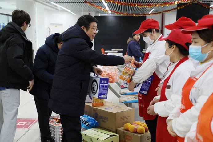 在校门值班室、食堂、图书馆、校医院、锅炉房、配电室、一卡通服务大厅等地,吴国生、马海涛详细了解寒假期间值班值守安排、设备运维保障、应急处置预案落实等情况,向坚守一线的工作人员送上节日问候,对大家恪尽职守、用心用情服务师生的辛勤付出表示诚挚感谢,并强调各单位要坚持以师生为中心,抓实抓细各项服务保障工作,营造安全有序、温馨暖心的校园环境,全力守护留校学生度过平安祥和的春节。