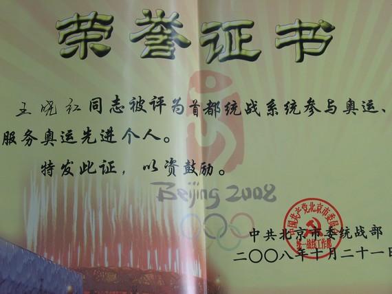 在10月21日上午召开的北京市统一战线参与奥运、服务奥运总结表彰大会上,我校外国语学院执行院长王晓红老师同其他902名统战人士被评为“首都统战系统参与奥运、服务奥运先进个人”。