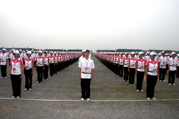 一次又一次的被闹钟把自己从夜幕中惊醒;一次又一次顶着烈日眼看着自己的皮肤逐渐变黑;一次又一次的饿到饥肠辘辘才能来到食堂吃饭;一次又一次站到两腿发酸却还要坚持到底;一次又一次让鞋把脚磨出血泡却还一瘸一拐的加快速度不让自己掉队;一次又一次的看到队友刚刚晕倒被抬出队伍,过了一会儿却又顽强地走了回来。正是这一次又一次的经历,让这些年轻的80后和90后们逐渐成长,走向成熟。正如一名参加了游行训练的同学在她的感受中写道:“生物钟一次又一次地被打乱,皮肤的颜色一天比一天更‘健康’,但我们仍然深知没有任何放弃的理由。那时的我们,在痛苦中成长;那时的我们,青春在飞扬;那时的我们,更成熟,更稳健,更坚强,更自信,这个夏天,我与祖国共奋进!”