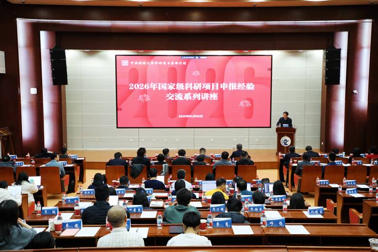 1月5日,我校2026年国家级重大科研项目申报经验交流讲座在学术会堂202报告厅举行,校长马海涛、副校长陈斌开及百余位教师参加交流活动。讲座由科研处处长张晓涛主持。