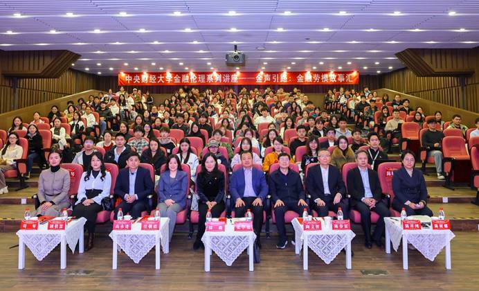 11月5日,由中央财经大学金融学院主办的“金声引路——金融劳模故事汇”在沙河校区图书馆地下报告厅举行。校长助理、金融学院院长张学勇致辞,金融学院党委书记徐淼总结发言,学校工会副主席陶文智以及金融学院、保险学院二百余名师生代表共同参会。金融学院副院长彭俞超主持会议,金融学院党委组织员陈妮娜主持对话交流环节。