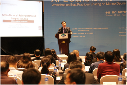 11月4日至5日,亚太经合组织(APEC)沿海城市海洋垃圾管理国际研讨会在厦门举行。我校绿色金融国际研究院副院长、绿色债券实验室负责人史英哲教授应邀出席会议,并发表题为《中国绿色金融政策体系与进展》 的演讲。