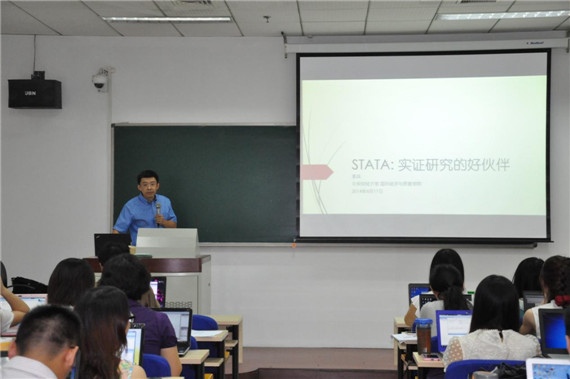 6月11日晚,国际经济与贸易学院青年教师学术论坛(第三场):《STATA:实证研究的好伙伴》在我校中财大厦2层通用教室1举行。青年教师李兵博士对在场的五十余名同学进行了STATA软件相关操作的培训。