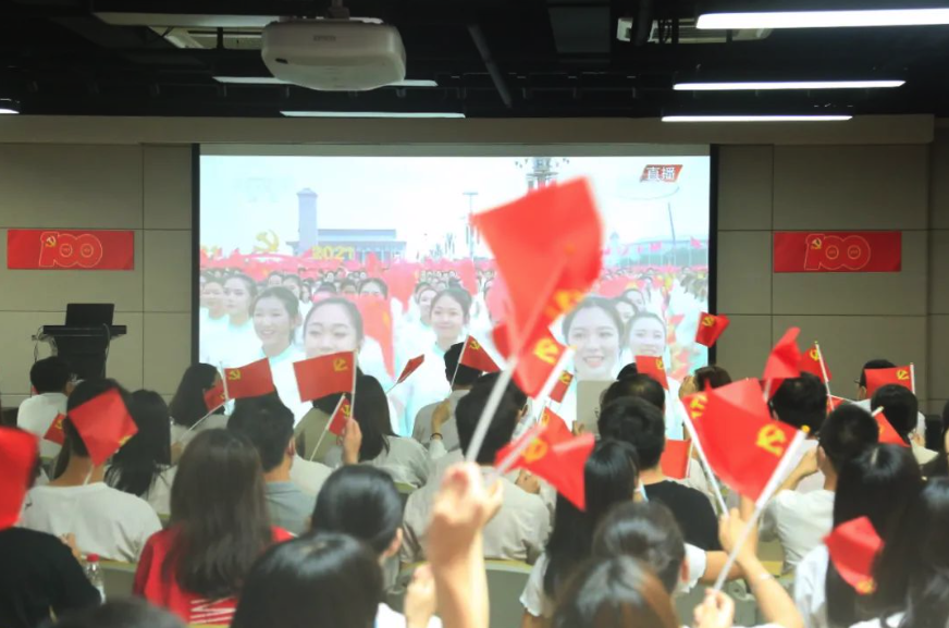 中国音乐学院组织师生收听收看了庆祝中国共产党成立一百周年大会现场直播,第一时间学习了习近平总书记重要讲话,并有155名师生在天安门广场参加了现场演出并观礼。学校在国音堂音乐厅专门设置了校内集中学习收看地点。在国音堂音乐厅,600余师生集体观看了庆祝中国共产党成立一百周年大会现场直播,认真学习习近平总书记重要讲话。国音堂里庄严肃穆、掌声不断,师生们心情激荡、倍感振奋。中国音乐学院艺术管理系2019级本科生郑思为表示,学习观看习近平总书记庆祝大会重要讲话,心潮澎湃、热血沸腾。人民是天,这是共产党的誓言,也同样是青年大学生的誓言。不仅要做发光的萤火,也要做影响大众的炬火,更要做漫天燎原的星火,为实现中华民族伟大复兴的中国梦贡献青春力量。