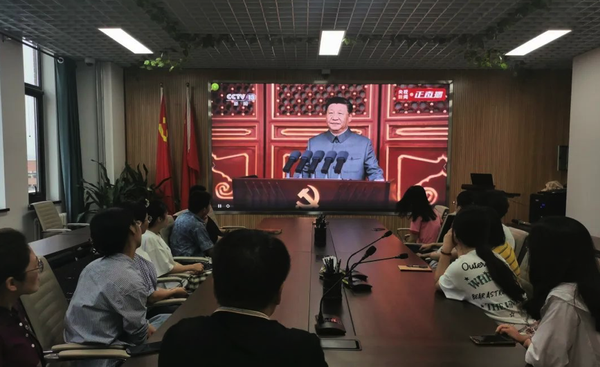 北京电子科技职业学院党委组织班子成员、机关党员干部职工在报告厅集中收看建党100周年庆祝大会直播盛况,共同感受振奋人心的时刻。各二级学院组织师生在会议室、办公室集中收听收看和交流学习体会,学校党史学习教育综合指导组成员列席旁听。师生集中精力,边看边记,认真领会习近平总书记的重要讲话精神。汽车工程学院教师芮静敏表示,一代又一代的共产党人用一生践行着党旗下的誓言。作为一名党员教师,唯有坚定理想信念,不断拼搏奉献,为党育好人,为国育好才,为党的教育事业不懈奋斗,方对得起共产党员这沉甸甸的责任和党的殷殷重托。电信工程学院学生汤晟表示,作为在建党百年之际发展的新党员,我要努力做到学党史、强信念,不断增强专业知识技能,提升综合素质,发扬总书记在讲话中提出的逢山开路、遇水架桥精神,不负韶华、不负期望!”